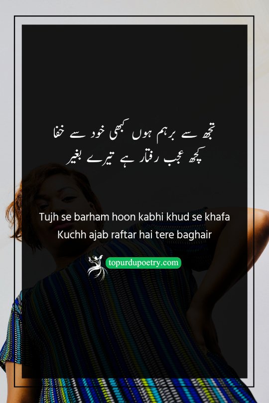 Tujh se barham hoon kabhi khud se khafa Kuchh ajab raftar hai tere baghair