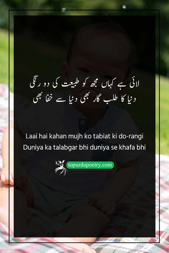 Laai hai kahan mujh ko tabiat ki do-rangi Duniya ka talabgar bhi duniya se khafa bhi