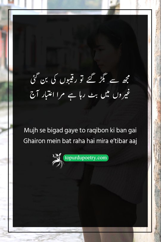 Mujh se bigad gaye to raqibon ki ban gai Ghairon mein bat raha hai mira e’tibar aaj
