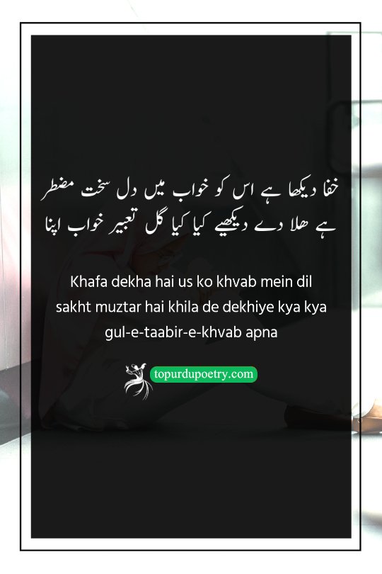 Khafa dekha hai us ko khvab mein dil sakht muztar hai Khila de dekhiye kya kya gul-e-taabir-e-khvab apna
