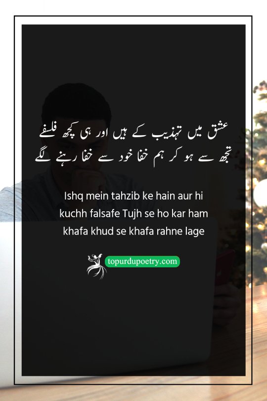 Ishq mein tahzib ke hain aur hi kuchh falsafe Tujh se ho kar ham khafa khud se khafa rahne lage