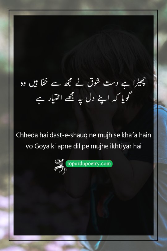 Chheda hai dast-e-shauq ne mujh se khafa hain vo Goya ki apne dil pe mujhe ikhtiyar hai