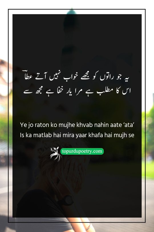 Ye jo raton ko mujhe khvab nahin aate ‘ata’ Is ka matlab hai mira yaar khafa hai mujh se