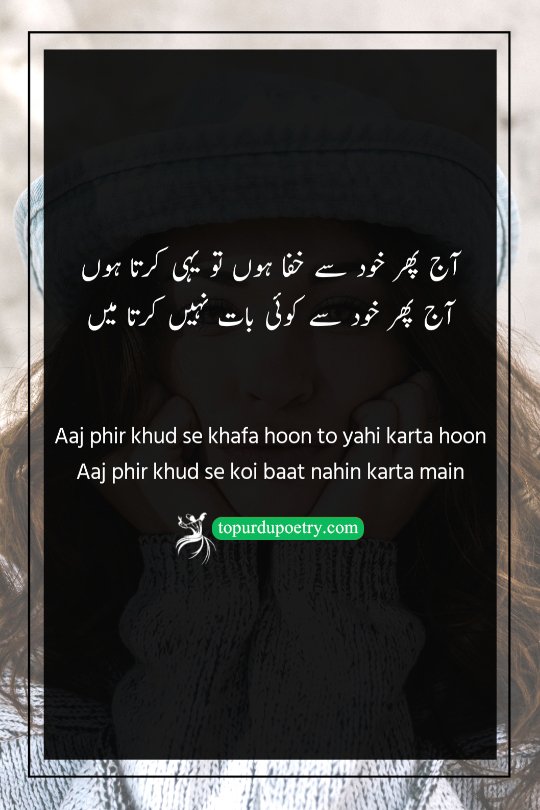 Aaj phir khud se khafa hoon to yahi karta hoon Aaj phir khud se koi baat nahin karta main