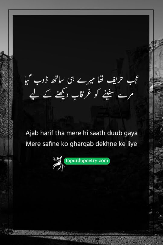عجب حریف تھا میرے ہی ساتھ ڈوب گیا مرے سفینے کو غرقاب دیکھنے کے لیے