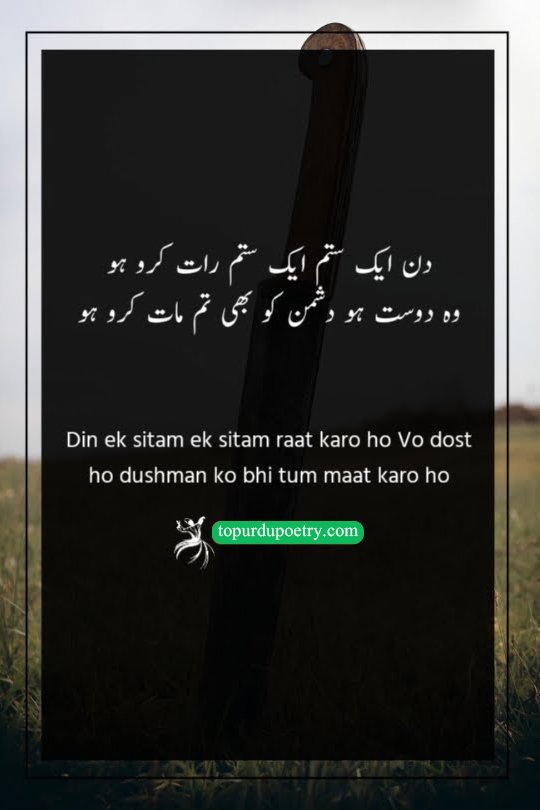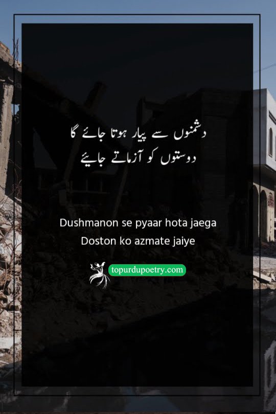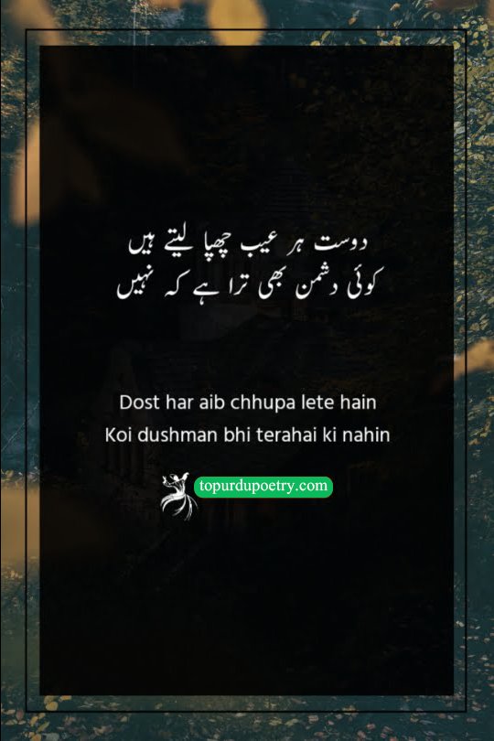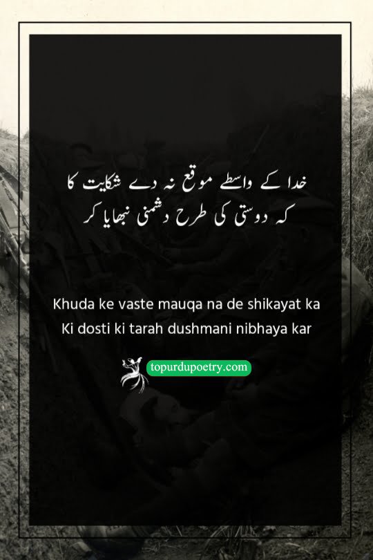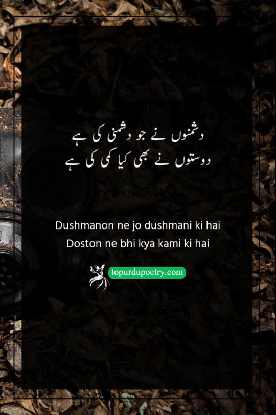 This couplet offers a cynical comparison between the harm caused by enemies and the disappointment brought by friends. While the poet acknowledges the hostility of his rivals, he points out that his friends have 'left no lack' in hurting him as well. It suggests a state of total disillusionment where the distinction between a well-wisher and a foe has blurred. It is a powerful choice for dushman-poetry-in-urdu, perfectly capturing the sentiment of someone who feels equally targeted by their inner circle and their outer rivals.