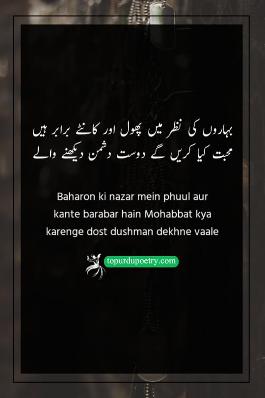 Baharon ki nazar mein phuul aur kante barabar hain Mohabbat kya karenge dost dushman dekhne vaale