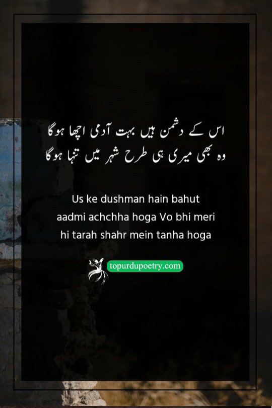 Us ke dushman hain bahut aadmi achchha hoga Vo bhi meri hi tarah shahr mein tanha hoga