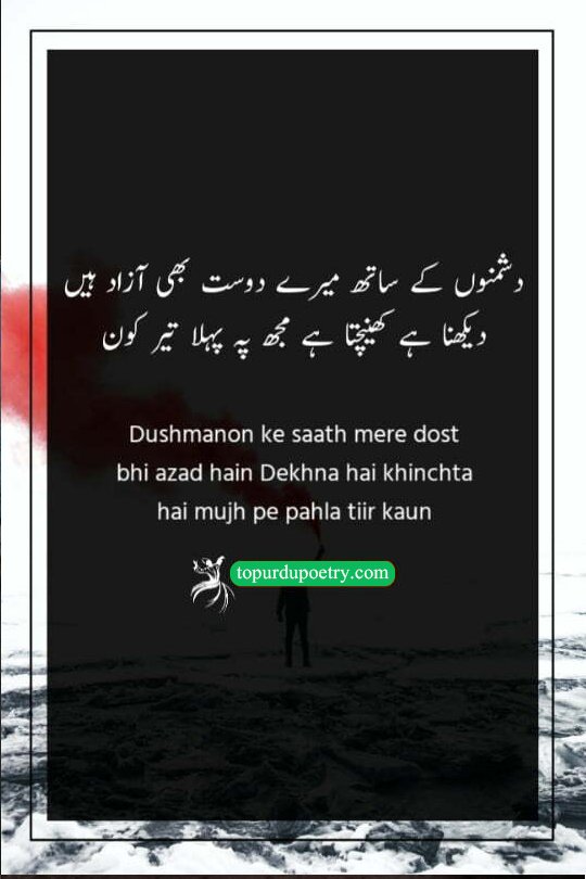Dushmanon ke saath mere dost bhi azad hain Dekhna hai khinchta hai mujh pe pahla tiir kaun