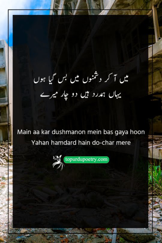 Main aa kar dushmanon mein bas gaya hoon Yahan hamdard hain do-char mere